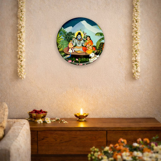 Shiv Parivar in Kailasha Art Wall plate with Wooden Stand - 10 inches