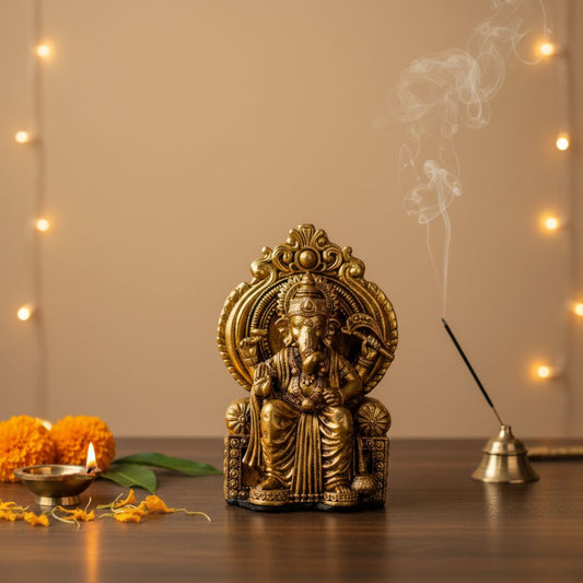 Handmade Brass Ganesha Idol for Car Dashboard | Lalbaugcha Raja Ganpati Murti