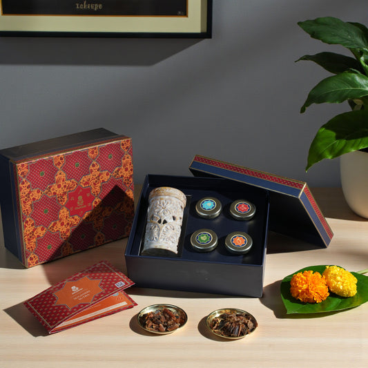 Sugandh Sutra Natural Bakhoor Fragrance Ritual Kit with Hand-Carved Soapstone Burner – Set of 4 (45 ml each)