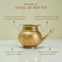 Rooted in the ancient Vedic practice of Shatkarma, the Jal Neti Pot is designed for the ritual of nasal cleansing -a gentle flow of lukewarm salted water that purifies the nasal passages, enhances breath flow, and restores inner balance. Handcrafted in brass, it transforms a simple act of self-care into a sacred morning ritual for clarity, focus, and wellbeing.