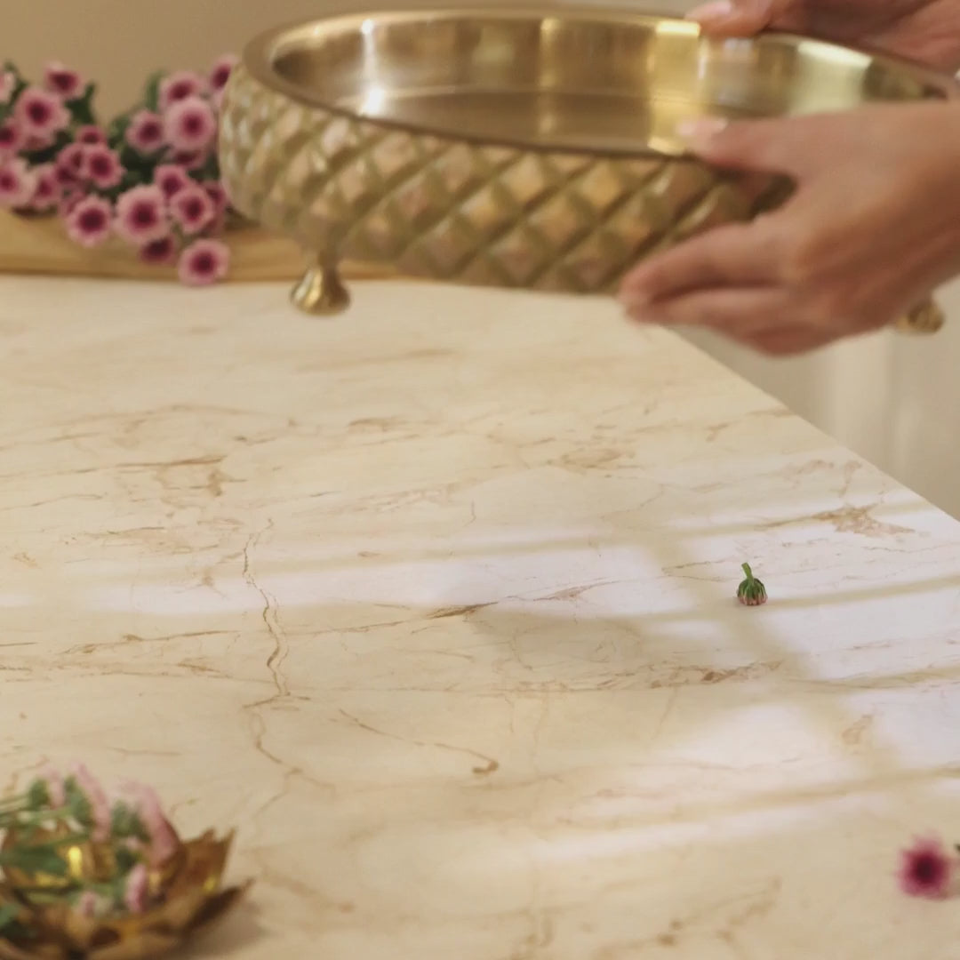 Perfect for Decoration : "Perfectly sized to sit beautifully on consoles, dining tables, or entryways, this urli bowl offers just the right proportions for floral arrangements, floating candles, or as a standalone accent piece. Its moderate weight ensures stability without compromising on elegance, making it a versatile addition to your decorative collection."