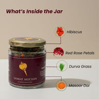 Honoring Lord Hanuman, this Sankat Mochan blend invokes courage, devotion, and protection. With hibiscus, red rose petals, durva grass, and masoor dal, it is ideal for Tuesday hawans that removes obstacles, strengthens willpower, and invites the fearless grace of Hanuman ji.