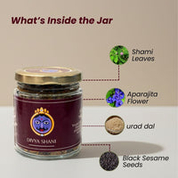 Devoted to Shani Bhagwan, this Divya Shani blend supports discipline, stability, and karmic balance. Featuring shami leaves, aparajita flowers, black sesame seeds, and urad dal, it is ideal for Saturday rituals that reduce hardships, balance Saturn’s influence, and strengthen resilience.