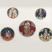 Krishna Kathayein in Kalamkari - Set of 5 Wall Plates