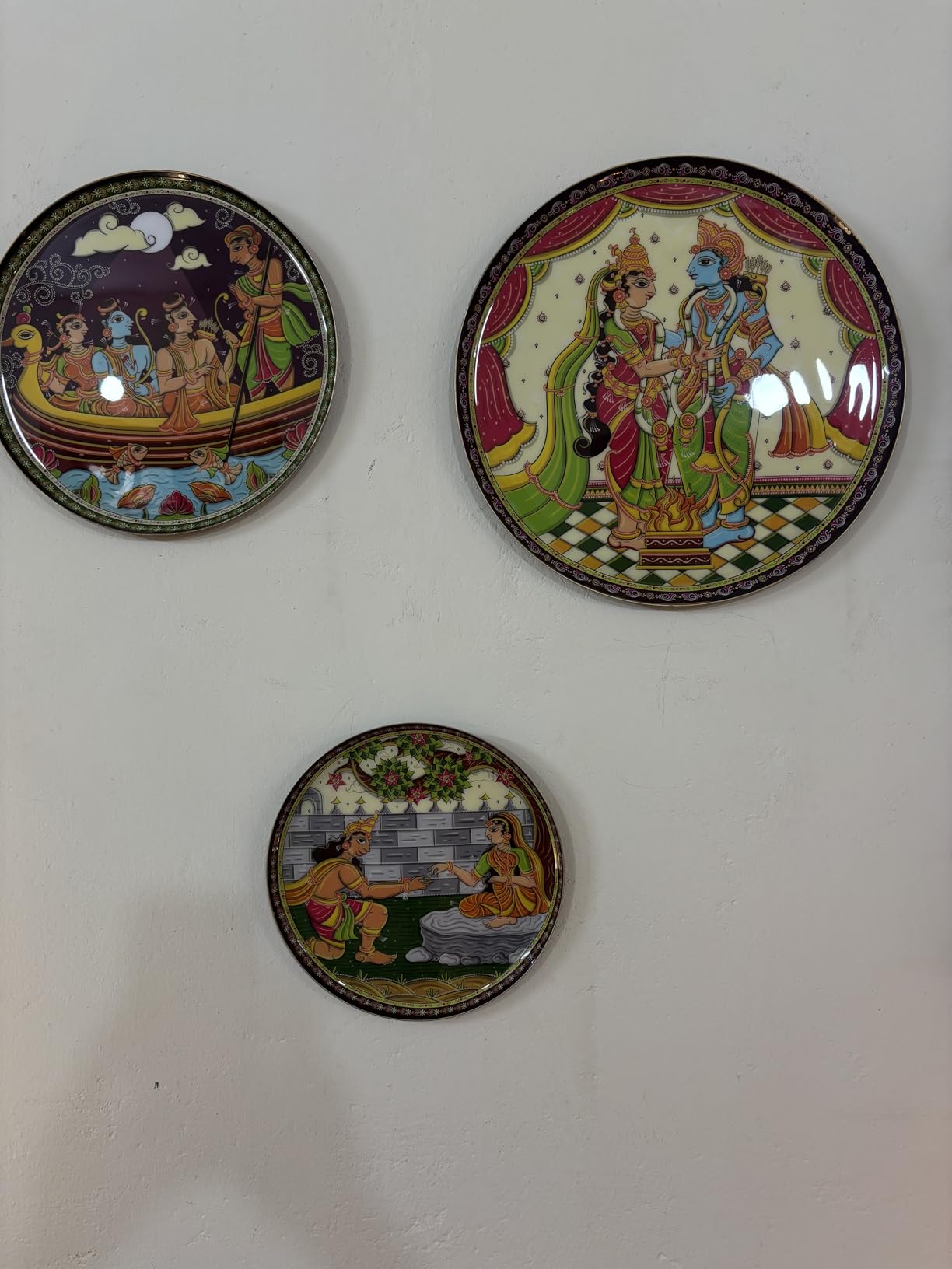 Perfect for Gifting: Ramayan wall painting brings to life the timeless narrative of Lord Rama, Sita, Lakshmana, Hanuman, and Ravana through rich visual storytelling. These paintings are often done in classical Indian art style.This home decor items is perfect for housewarmings, weddings or any occasion, these plates make a thoughtful and culturally significant gift item for the Family.