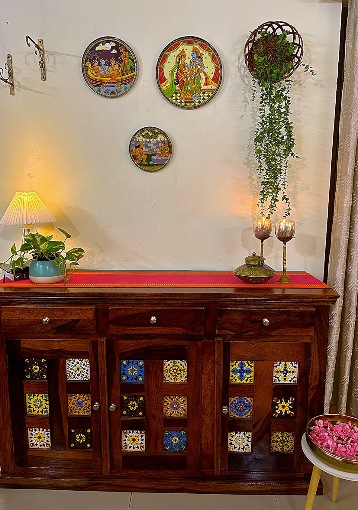 Effortless Installation: These Ritualistic Wall Plates with Ramayan painting are conveniently equipped with Hooks, and are easy to install