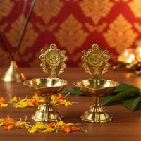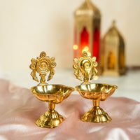 Brass Shankh & Chakra Jyoti Diya-Set of 2